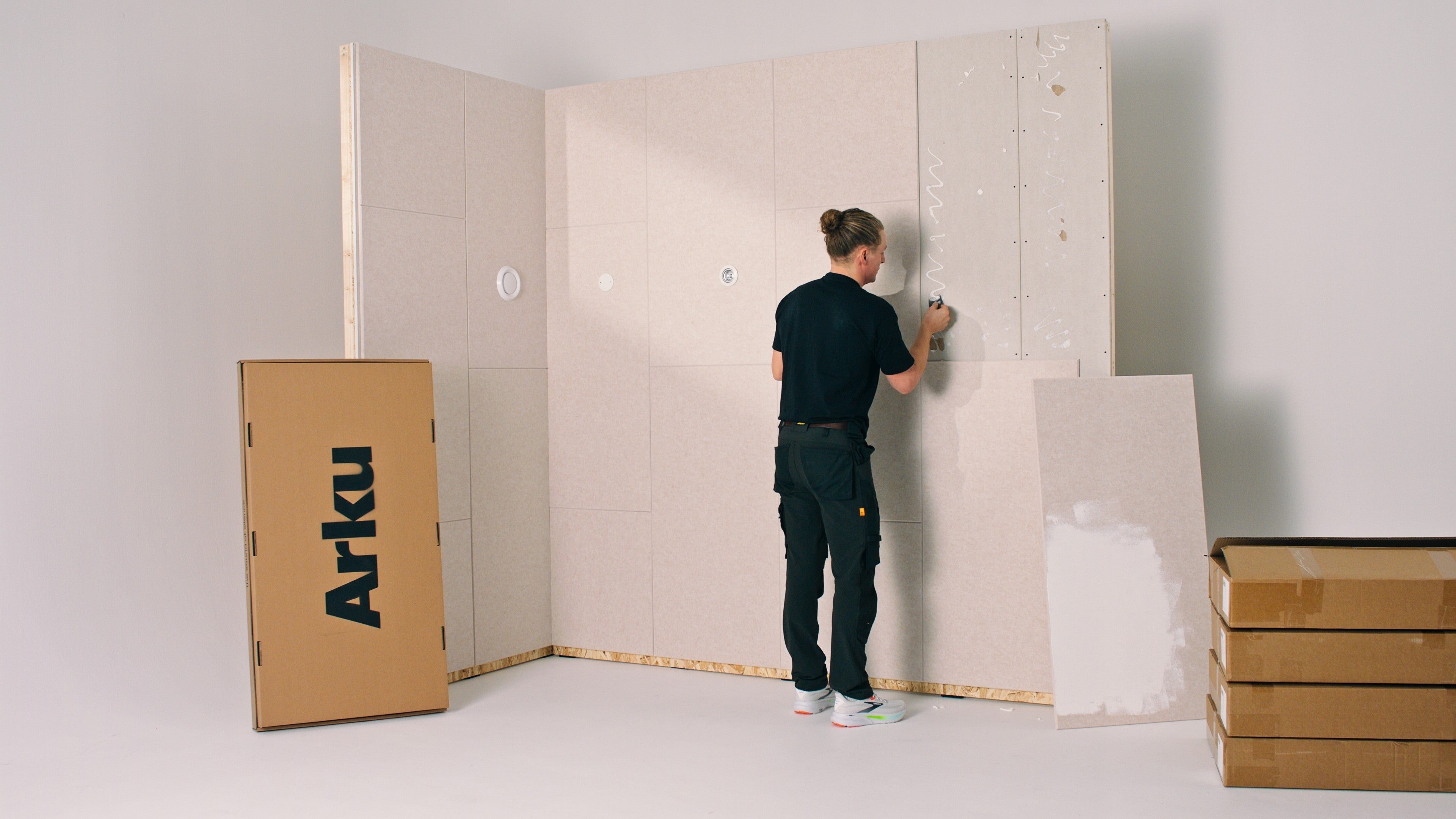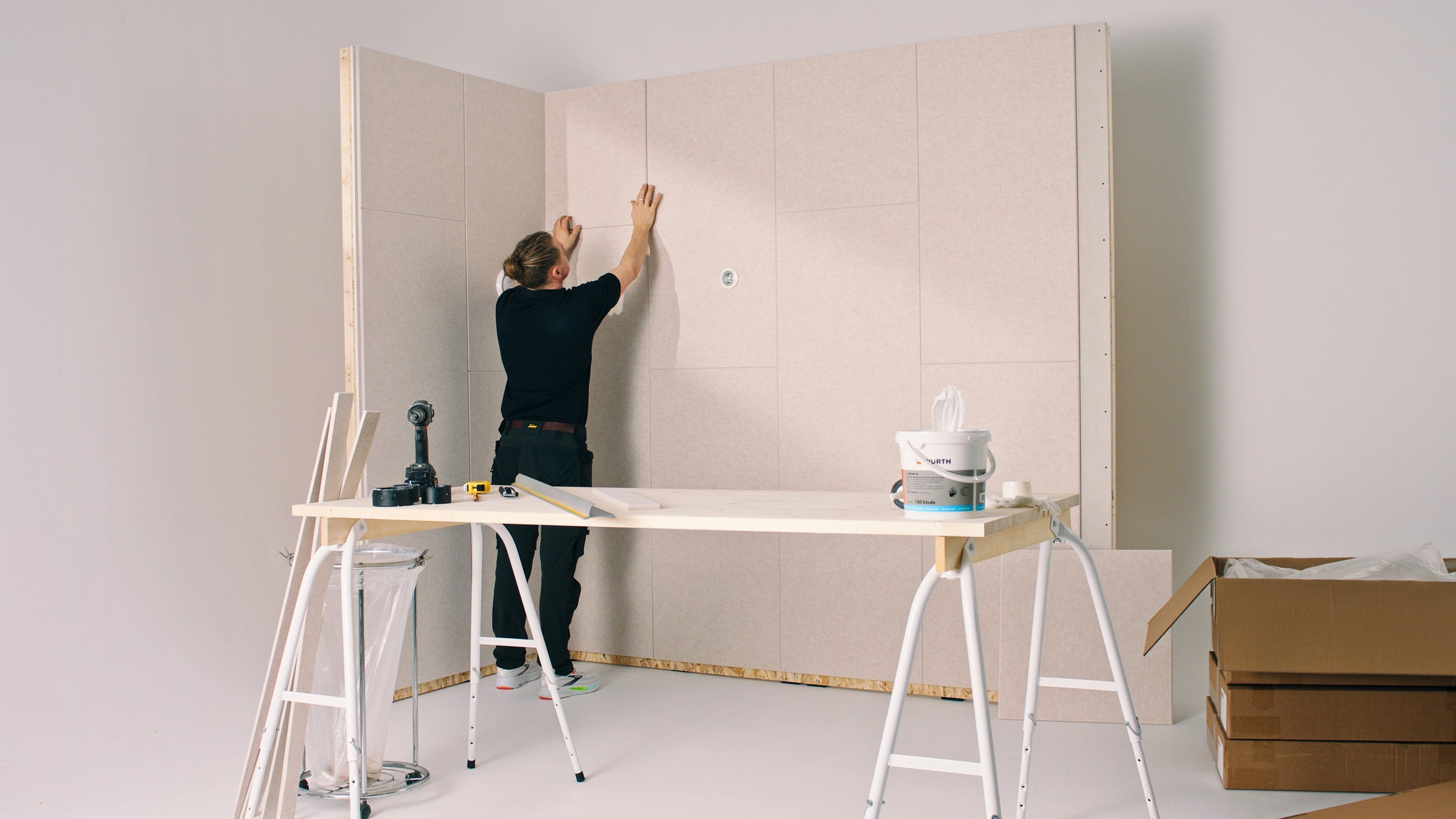 Ingen boring, ingen støv, ingen oprydning. Panelerne monteres med lim: Hurtigt, rent og uden forstyrrelser.